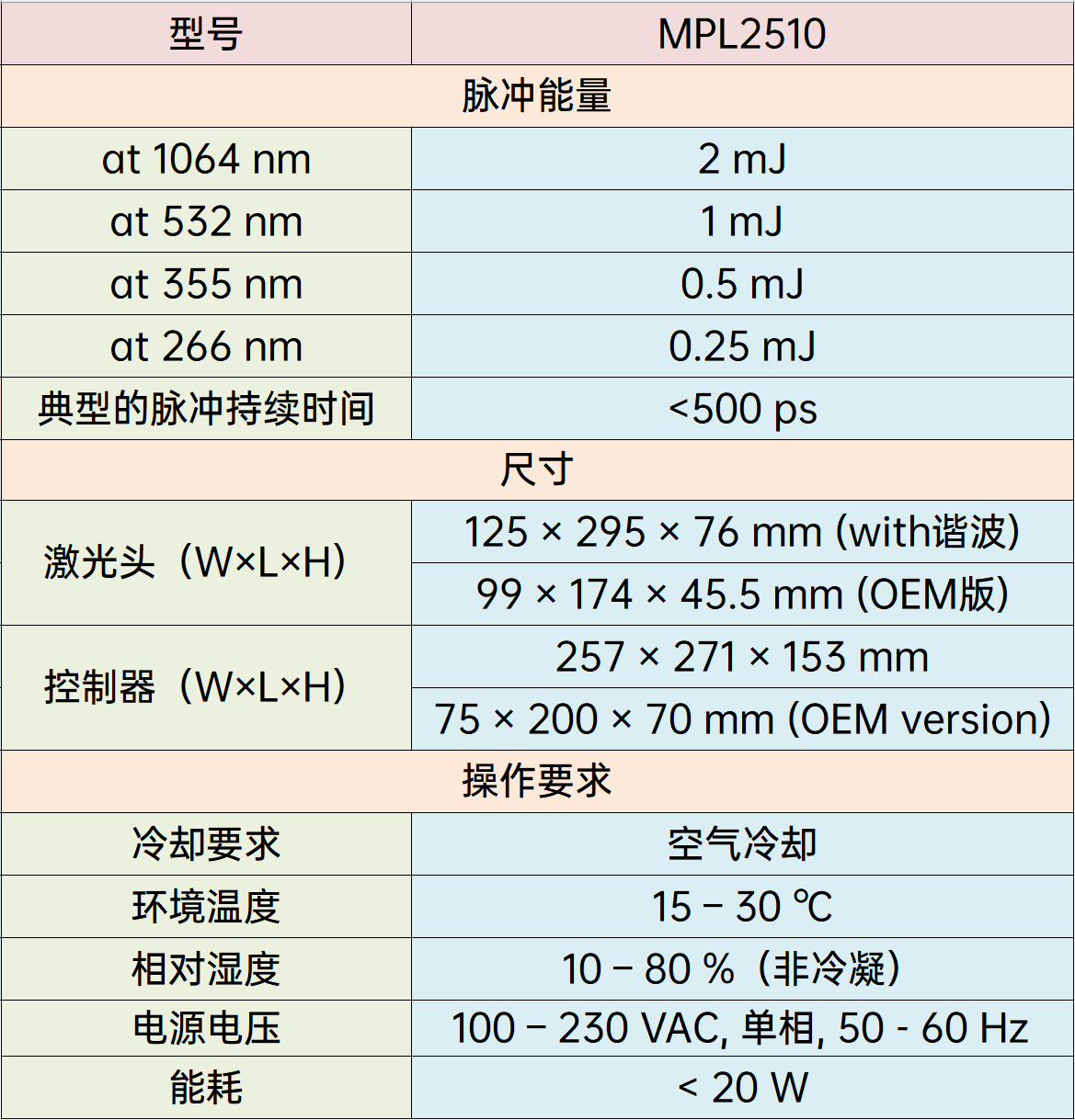 - 在 1064 nm 处达到 2mJ 脉冲能量