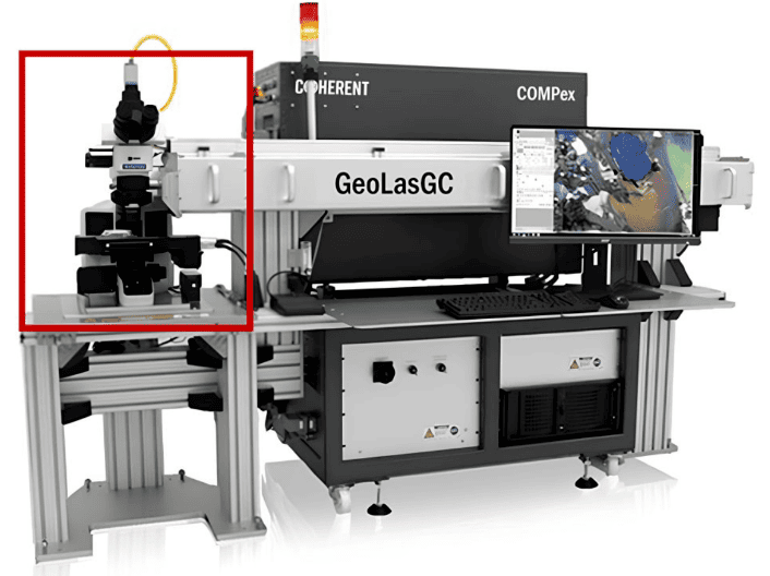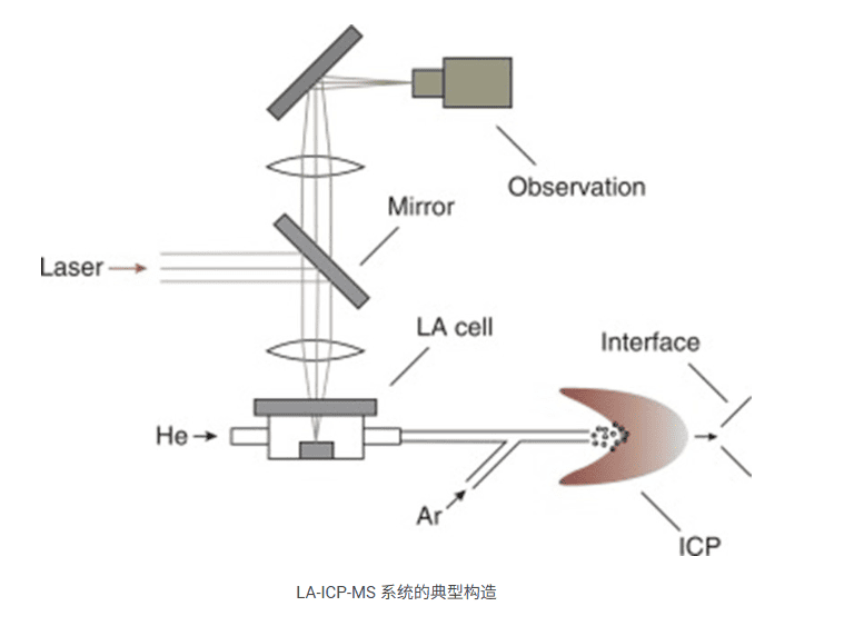 LA-ICP-MS(激光烧蚀电感耦合等离子体质谱)是一种强大的元素分析技术,它用高能激光从固体样品表面剥蚀出微米级颗粒,再由质谱仪分析其成分。在这个过程中,物镜扮演着双重角色:既要将高能激光精准聚焦到样品上,又要作为显微镜让研究人员观察剥蚀过程。