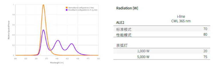 高达70W的i-line曝光(CWL 365 nm)