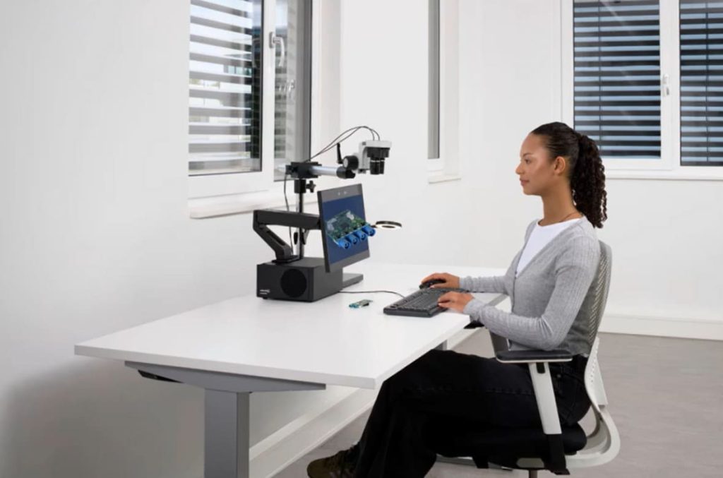 符合人体工程学的工作体验: 在大尺寸 4K 显示器上舒适地观看物体,宽大的工作区域,头部可自由活动,柔性弹簧式显微镜支架