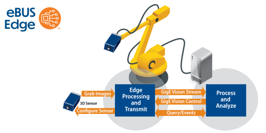 eBUS Edge是一款基于软件的连接平台,旨在将3D相机转变为完全兼容GigE Vision和GenICam标准的设备。与传统基于硬件的解决方案不同,eBUS Edge无需额外物理组件即可实现功能,既减小了设备体积,又能通过标准以太网线缆确保无缝数据传输。