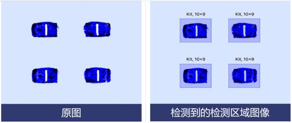 将目标检测模型应用于所捕获的图像,它能自动检测并分离出四组电极及其涂覆区域。即使这些组的位置或角度存在轻微偏差,该模型也会自动调整动态 ROI,以准确提取正确位置。