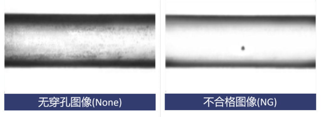 企业B通过采用一套将自动检查设备与显微镜摄像头集成的硬件系统,彻底改变了其检查流程。该系统会自动旋转每根导管,同时高倍率显微镜摄像头实时捕捉图像。然后,基于友思特Neuro-T平台的深度学习检测模型会对这些图像进行分析,自动判断穿孔是否存在缺陷。