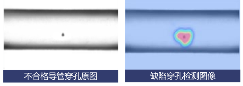某金属制造企业(B公司采用友思特深度学习的视觉检测技术,检测此前依靠人工检查的导管微穿孔缺陷。该方案使检测速度与生产速度同步,大幅提升了生产效率,确保了质量控制的稳定性。
