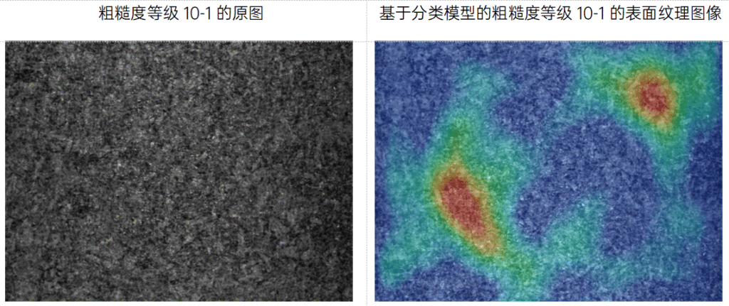 该分类模型是基于面阵相机采集的数千张高分辨率图像进行训练的。由于手动标注所有图像不切实际,大约100张图像被手动标注了粗糙度等级。