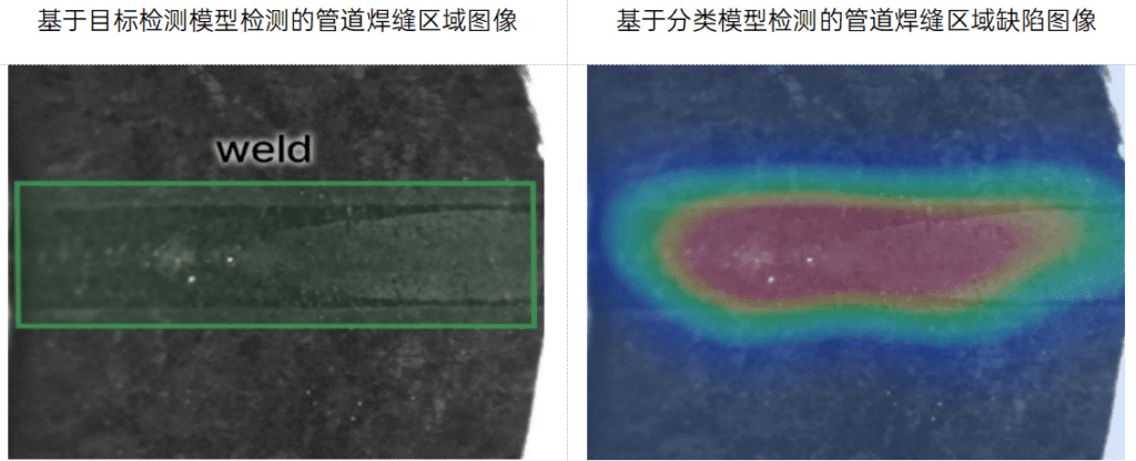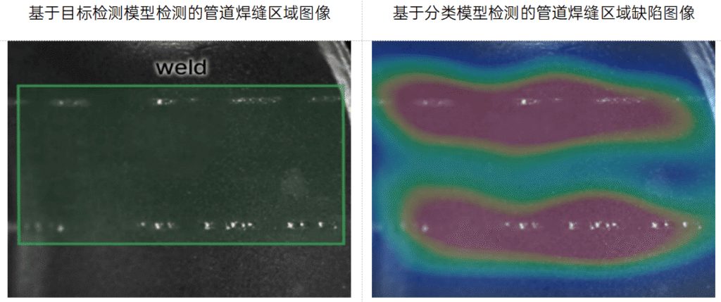 (1)使用目标检测模型仅检测整根管道上的焊缝区域。这样可以排除非焊接区域的干扰,从而助力构建高性能的深度学习视觉检测模型。